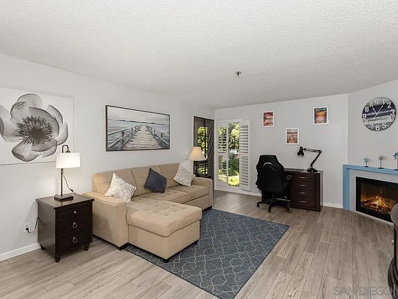 Welcome home to this beautiful, spacious, second-floor one-bedroom condo, nestled in a secure gated community with 24/7 guard service. Completely remodeled with a fun beachy kitchen, gorgeous bathroom, and luxury vinyl plank flooring throughout. Enjoy cozy evenings by the gas fireplace and the convenience of a spacious walk-in closet, ample in-unit storage, plus additional storage just outside the unit. Take in picturesque views from your private balcony overlooking a peaceful, secluded courtyard. Presidio Place offers resort style living, rich with amenities, including: • Multiple pools, saunas, and a hot tub • Tennis courts and a tranquil lagoon • Community garden • Beautifully landscaped grounds Centrally located, this complex is just minutes from the beach, the University of San Diego, Fashion Valley Mall, and a variety of dining and entertainment options. Whether you're looking for a peaceful retreat or a place to entertain, this condo offers a perfect mix of comfort, convenience, and amenities!