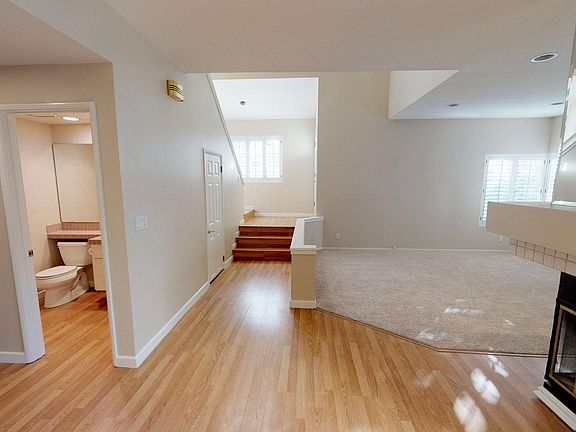 This beautiful Braemar townhome features, 3 bedrooms 2 1/2 baths over 1800 ft. of living space, a beautiful living room with fireplace, a formal dining area and a family room with a second fireplace adjacent to the kitchen with breakfast bar and tile counters, and updated appliances. Upstairs is a large primary bedroom with ample closet space attached bath with a soaking tub in a separate shower area. There are two more bedrooms and another full bath upstairs. This home also has indoor laundry, a two-car garage, central air, and backs up to open space, and a commuity pool and spa. Conveniently located near shopping, dining, award-winning schools, beautiful parks, hiking and biking trails.