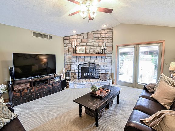 Beautiful all brick home nestled on 2 private acres! The home features wonderful outdoor living spaces with a tranquil covered front porch, pergola, patio, and lush landscaping overlooking the back grounds. The home's great room is adorned with a cozy stone fireplace, soaring ceiling, and glass doors leading to the patio. French doors lead to the private den from the foyer. The formal dining room overlooks the back patio. The kitchen has been updated w/granite countertops, hardwood floors, & eating area with bay window. The master suite features a vaulted ceiling, walk-in closet, garden tub, shower & double sinks. There are 2 other light-filled bedrooms & a completely remodeled full bath with gorgeous stone tile, updated plumbing, and lighting fixtures.