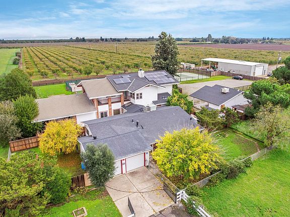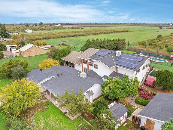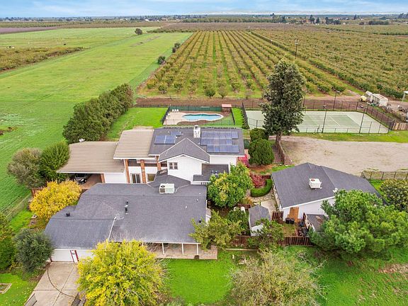 This unique property offers 5118 sq ft of flexible living space with two separate living quarters, each with its own kitchen, they can be used as 1 residence or they can be separated to create two private spaces. This is great for multigenerational living, or short/long term rental scenarios. There are 9 bedrooms and 6 baths total, a 2-car garage, a 4-car carport, plus a 2-car carport, so parking is never an issue. There's also a nearly 1,000 sq ft guest quarters with a full bath and hookups ready for a kitchen, giving you even more options for guests or extended family. A total of 10 acres with about 7.5 acres of beautiful cherry orchard(leased), still with plenty of room for gardening, family farming, and adding more tree crops to the current planting of fig, citrus, peaches, plums, nut trees. You'll also enjoy a tennis court, swimming pool, and a huge chicken coop! This property is already a great setup for everyday living or large gatherings. Even with its quiet country feel, the property is conveniently located with three direct routes to Hwy 99, making travel easy while still keeping that peaceful rural setting. Local fruit stands and markets are nearby and don't forget about The Waterloo Club for ribs and pesto! This is a rare mix of space, flexibility, and country char