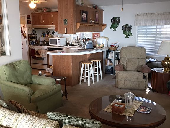 All ready for you to move in to this CUTE + CLEAN 2 bedroom, 2 bath located in Dogwood Senior Mobile Home Park. Open floor plan with many recent updates including: Newer Roof on home + carport, flooring throughout, heater, toilets, garbage disposal, and painted interior. Washer, Dryer, Refrigerator + Microwave ALL INCLUDED with sale. Smoke + Pet free home.