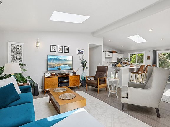 Welcome to 5767 Baleine St., a residence that perfectly blends comfort, style, and convenience in a sought-after neighborhood. From the moment you arrive, you’ll be greeted by impressive curb appeal with a classic mid century modern carport, a renovated office space and a sense of warmth that invites you to step inside and make this house your forever home. Featuring an open-concept layout that seamlessly connects the living and dining areas, this home is ideal for relaxing evenings or entertaining guests. Natural light pours through generous windows and skylights throughout, highlighting well-appointed West Elm finishes and touches that create a bright, cheerful environment. The kitchen is tailored for both daily routines and special occasions, featuring Quartz counter space, stainless steel appliances and modern cabinetry. Whether you’re preparing quick meals or hosting get-togethers, this functional space makes cooking a pleasure rather than a chore, helping spark culinary creativity. Retreat to the bedrooms, each offering a comfortable oasis for restful nights. The primary suite provides a perfect escape with space to relax, while additional bedrooms are versatile enough to suit guests, growing family needs, or a dedicated home office. The beautifully newly updated bathroom has heated black Japanese hexagon tile floors, marble counter and brushed gold accents and fixtures. Outdoor living is just as appealing with a private, LARGE lot, fenced backyard offering room to play, garden, sit by the fire pit or simply soak up the sun on the patio. A shed provides storage or possibly a future "she" shed workspace for hobbies! Location is key, and this home truly delivers! Enjoy the convenience of being so close to Lake Oswego amenities, I-5 and highly rated schools. Don’t miss your chance to experience this exceptional property firsthand—reach out to your favorite realtor for a private showing today!
