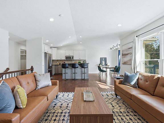 Cozy fireplaceFinished basementLarge rec roomFull barWalk-in closetVaulted ceilingsEngineered hardwood floors