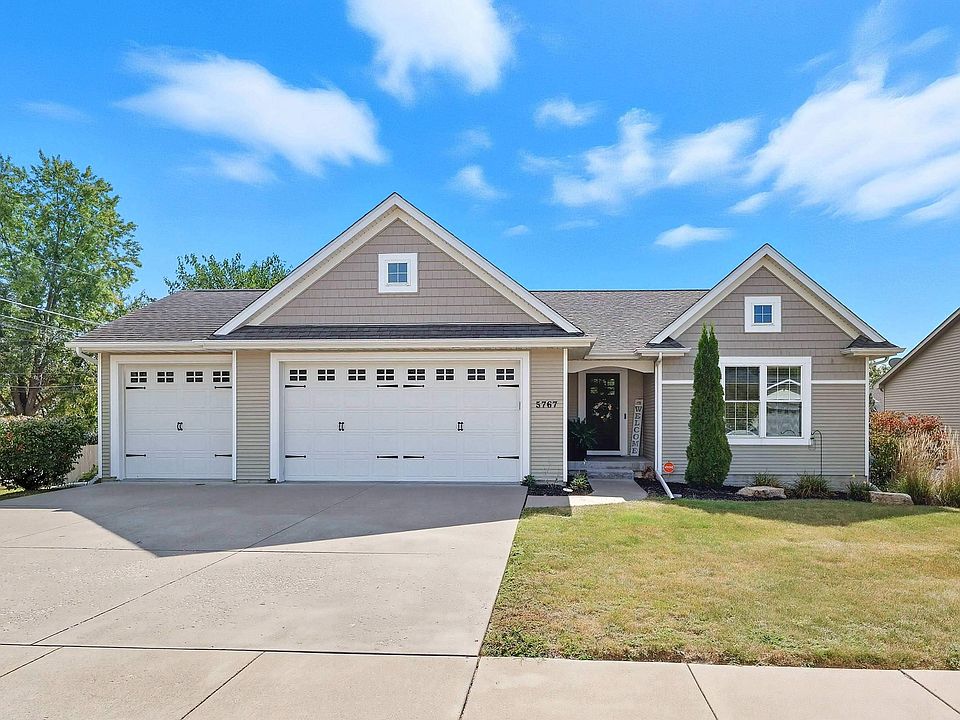 Welcome to this stylish and beautifully maintained ranch home in the desirable Pleasant Valley School District, built in 2012 by respected local builder Aspen Homes. With 4 spacious bedrooms, a dedicated office, and a finished basement, this home offers flexible living space for today’s lifestyle. The heart of the home is an updated kitchen with freshly painted cabinetry, granite countertops, and engineered hardwood floors that flow into the open-concept great room. Vaulted ceilings and a cozy fireplace create a warm, inviting atmosphere—perfect for entertaining or relaxing. The finished basement expands your living space with a large rec room, full bar, dedicated workout room, and ample room for hosting game nights or movie marathons. Retreat to the lovely primary suite featuring stylish finishes, a tiled walk-in shower, dual vanities, fun wallpaper accents, and a large walk-in closet. Outside, enjoy a beautifully fenced yard with a deck and firepit area—ideal for gatherings or peaceful evenings at home. The 3-car garage provides plenty of room for vehicles, tools, and storage. Don't miss your chance to own this quality-built home in a fantastic location!