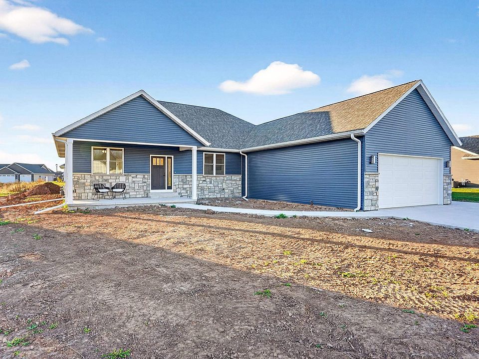 Welcome home to this sprawling, 3532 square foot ranch located in Edgewood Estates on Appleton's North side. Drenched in modern must have's, this home features sleek quartz countertops, soaring 10 ft ceilings, statement beams & a main level office. Adjacent to the laundry room, the primary suite is a luxurious retreat. Tiled shower, soaking tub, dual vanities & expansive custom closet. The lower level showcases a wet bar (designed w/a future beverage & full size fridge in mind), large game or media area, bedroom & full bath. Perfectly situated on an East/West lot gives ample opportunity to catch front porch sunrises & enjoy sunsets under the covered back patio. Thoughtfully designed for both comfort and style, this home offers everything you want in a modern, move-in-ready package.