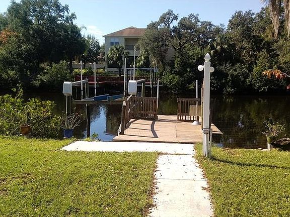 Quaint downtown waterfront New Port Richey 2 bedroom home on the beautiful Cotee River. This home features a dock with great fishing in your back yard and a boat lift with a short ride to the gulf. Relax and enjoy your sunsets in your hot tub. This home has a new air conditioning system that was installed in 2016. Windows abound that embrace the river views. Large screened in lanai for entertaining. Kitchen with breakfast bar. Get ready to call this wonderful golf cart friendly community home, Close to Sims Park and local attractions.