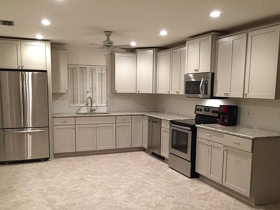 Renovated Sept 2015. For more information: 914 282 1588. Attractive, 3 bedroom ranch style brick front home in coveted, well kept, quiet, upscale neighborhood. Kitchen: all new Martha Stewart cabinets, new stainless steel appliances, French door refrigerator. Open concept: tile floor throughout kitchen, large living room/dining area, breakfast nook, front hall. Oak laminate hardwood floors in all 3 bedrooms. Lanai opens to barbecue area and small patio. Large garage, remote controlled overhead door, separate golf cart door. $1,000 discount to the $2500 fee to join the Palm Aire Country Club available: two stunningly beautiful golf courses, tennis, swimming pools, fitness center, luxurious clubhouse.