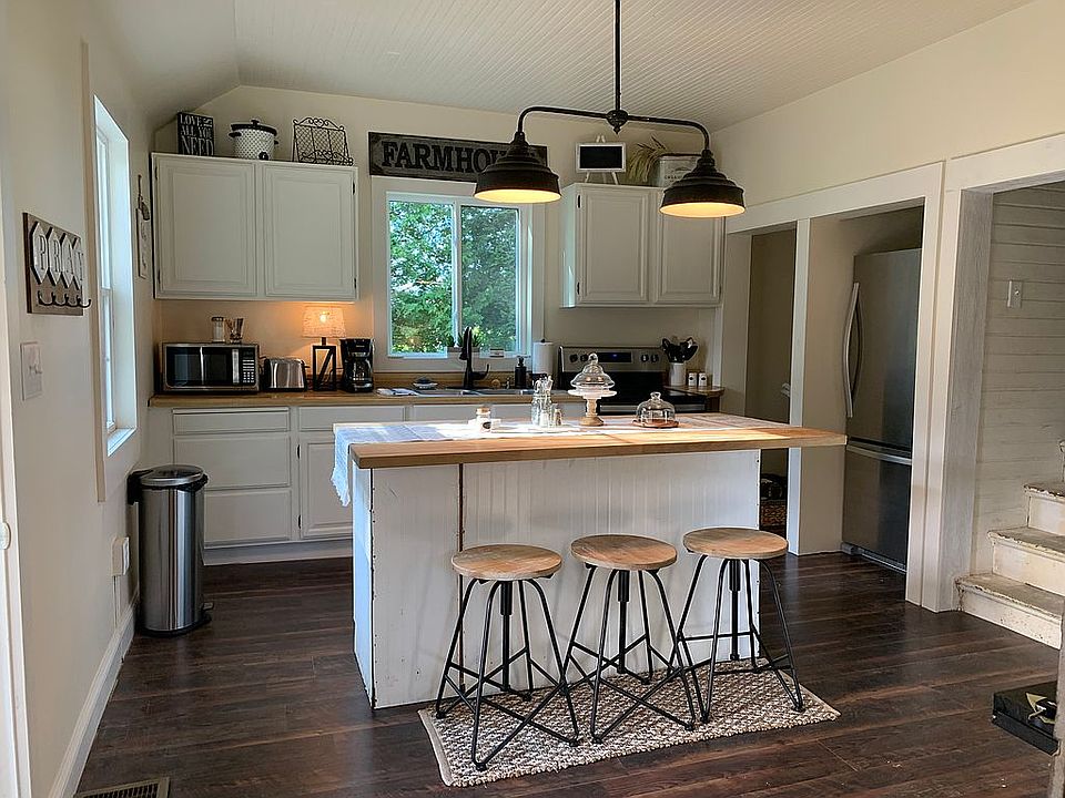 Want to live in the country, but yet in a small town, with walkability to the local post office, church, store, etc This charming country style-home is one-of-a kind 3 Bed 1 Bath Home has new windows, new clawfoot tub, new stainless appliances, new stackable washer and dryer, new roof, new water heater, new furnace, new plumbing, new doors, brand new septic/well, insulated attic, new landscaping, and new driveway. This country kitchen has a butcher block countertop, with a cozy living room, main floor bedroom if you want to close off the upstairs and live downstairs. House has a one car garage perfect for storage. Furnished, Decorated, Includes Wifi, Smart TV, All Utilities included. Sleeps 10. Call Today!