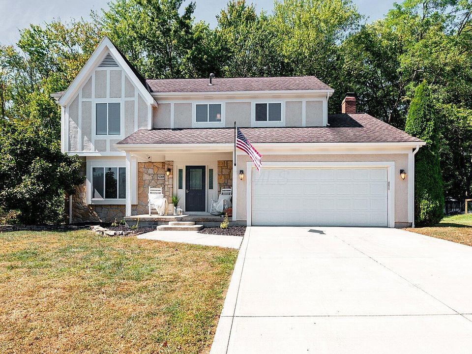 Welcome to this charming 3-bedroom, 3.5-bathroom Tudor Revival home, offering 2,455 square feet of beautifully designed living space on over a half-acre lot with a private, wooded backyard. Nestled in The Wilds neighborhood, bordering Blendon Ravines Metro Park and considered part of the Little Turtle Golf Course Community, this home offers both tranquility and convenience—with no HOA restrictions.
