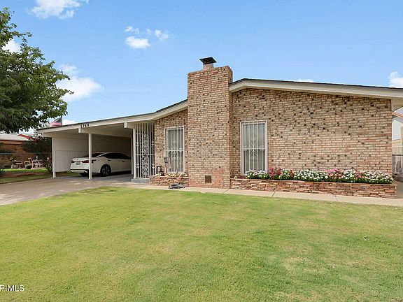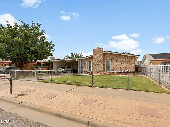 $5,000 PRICE IMPROVEMENT! Meticulous Northeast Three-Bedroom Brick Single-Level Home with Refrigerated Air and Parklike, Gated Front and Backyard. Conveniently located just minutes from US-54, less than 25 minutes to Fort Bliss, and close to shopping and a variety of restaurants. Features include a privately enclosed, covered front porch and a double carport with access to a storage closet. Inside, you'll find three bedrooms and 1.75 baths. The tiled entryway opens to a spacious live-in room with a fireplace. A galley kitchen offers a pantry and laundry closet. The master bedroom includes an updated ¾ bath. Additional highlights: a den with storage closet and backyard access, a pergola with rolling shade, and a sprinkler system with timer. Recent updates include the roof replaced in 2023 and windows replaced in 2010.