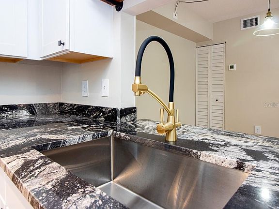 Professionally remodeled 1st floor condo in The Gardens of Palm Aire. This spacious 1 Bedroom, 1 Bathroom condo features a brand new A/C 2019, New Kitchen and New Bathroom. The kitchen features new cabinets, exquisite dark granite counter tops, gold fixtures and brand new stainless steel appliances. The living and dining room combination has fresh paint, new fan, pendant light and unique wall features. The bathroom has been completely updated with new vanity sink, gorgeous shower tile, new floor and fixtures. Additionally, you'll find new closet doors, new water heater and interior stackable washer and dryer. Enjoy the screened in porch with new flooring, just steps to the heated community pool, tennis courts, clubhouse and shuffleboard. A short drive to the UTC mall, Benderson Park, restaurants and entertainment. Come check out this affordable and new condo in Sarasota. It won't last long!