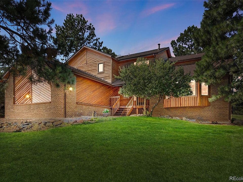 Welcome to this spacious two-story home in The Pinery, one of Parker’s most desirable neighborhoods known for its large lots, mature trees, and tranquil natural setting. Situated on a .42-acre corner lot, this property offers both privacy and curb appeal. The versatile floor plan includes 5 bedrooms and 3 baths, featuring a main floor study/guest bedroom with an adjacent ¾ bath, three bedrooms upstairs, and one in the spacious garden-level basement. The primary suite is a retreat with hardwood floors, a five-piece bath, and a private balcony with mountain views. A second upstairs bedroom also has its own balcony, while the third bedroom with dual closets is large enough for two beds. Vaulted ceilings in the living and family rooms create bright, inviting spaces, while the garden-level partially finished basement provides plenty of potential for a recreation room, gym, or theater. Outside, the beautifully landscaped yard enhances the home’s curb appeal and offers plenty of space to relax or entertain. A three-car garage completes this exceptional property. Low HOA dues and no special taxing/metro district!