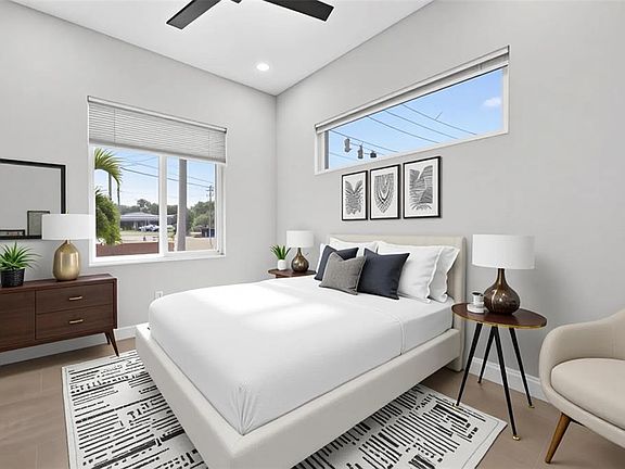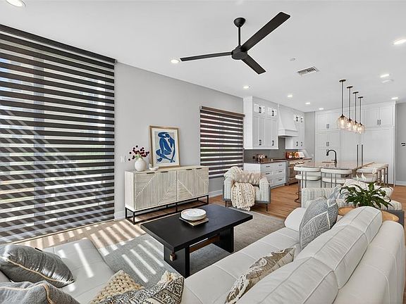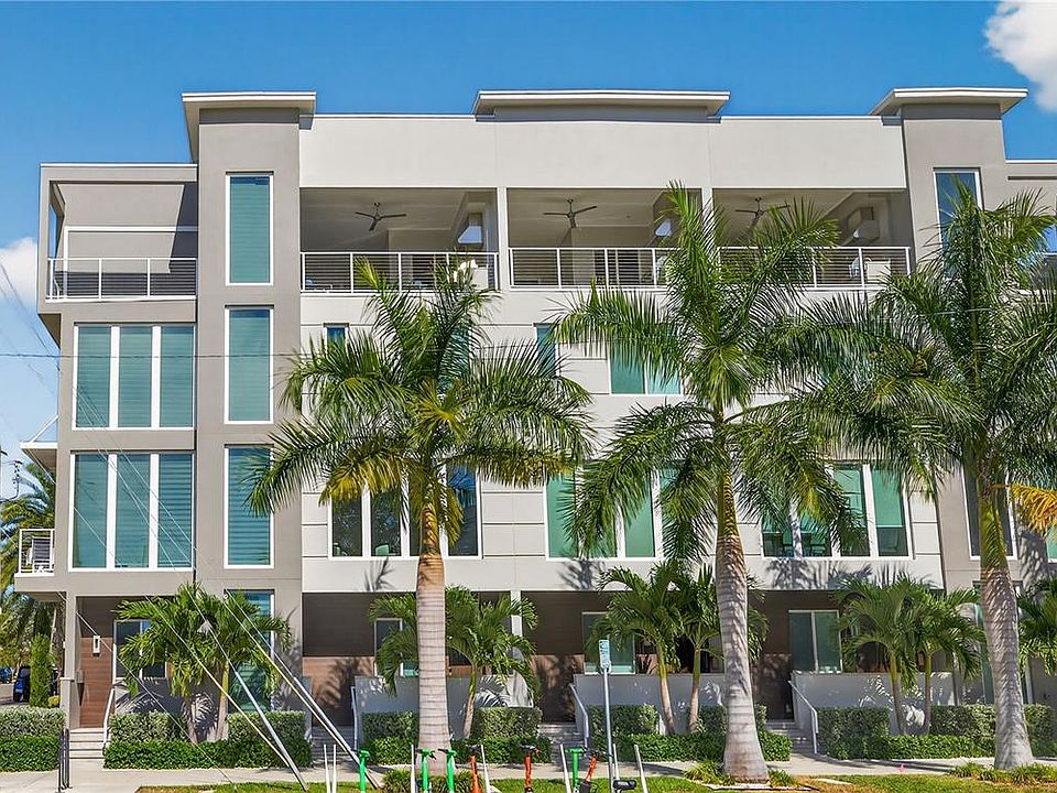 One or more photo(s) has been virtually staged. Experience modern luxury living in this stunning corner unit townhouse located in the heart of downtown St. Petersburg. This spacious 4-bedroom, 4-bathroom residence features soaring floor-to-ceiling windows that fill the home with natural light and showcases beautiful city views. This unit has 4 floors and includes a private elevator. The gourmet kitchen is a true showpiece, featuring top of the line Thermador appliances, including a built-in wine fridge and sleek wet bar. The gas range has six large burners with a griddle and two ovens. Custom cabinetry extends all the way to the ceiling and is beautifully illuminated from within by soft interior lighting behind glass panels creating a warm, elegant glow that highlights the kitchen's design. Rich hardwood floors and upgraded tile flow throughout, complemented by custom blinds (some motorized) for effortless comfort and style. The home also includes a large bonus room, office on the third floor, two laundry rooms (one on the main level and one on the third level) both sets of washers and dryers will convey with the unit. Step outside to your spectacular private rooftop terrace, designed for year-round enjoyment. This incredible space features an outdoor kitchen with Alfresco grill and refrigerator, plus generous dining and lounge areas enhanced by motorized sun shades perfect for entertaining or relaxing any time of year. Additional highlights include a two-car garage with epoxy flooring and an EV charging outlet, tankless hot water heater, solar ready if buyer wants to add it in the future, all pre-wiring for AV equipment is labeled and ready. With exceptional design, luxury finishes, and an unbeatable downtown location just steps from dining, shopping, and the waterfront, this residence embodies the best of the St. Petersburg lifestyle.