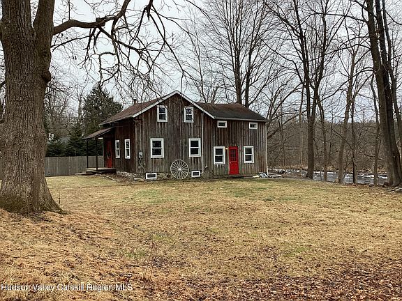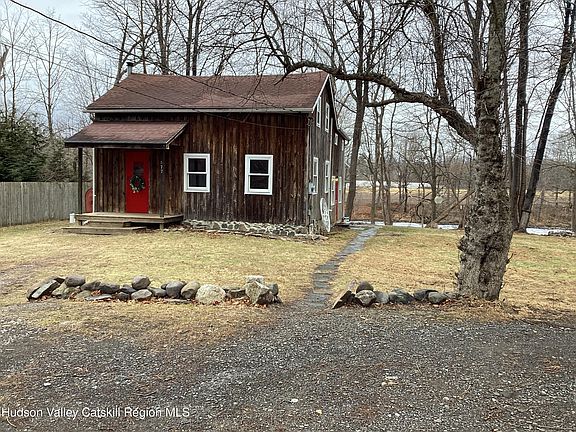 Perched high on a bank above the Rondout Creek on a quiet country road, this little antique farmhouse is as picturesque as they come! Original detail survives throughout & includes wonderful old wideboard floors, wainscoting, old-fashioned doors & hardware. Large living room & eat-in kitchen creates a sense of spaciousness despite the small footprint and the kitchen door opens to a wonderful, big side yard that calls to both the young & the-young-at-heart to run & play! The view of the Creek behind the house is expansive and the total picture is worthy of a storybook.