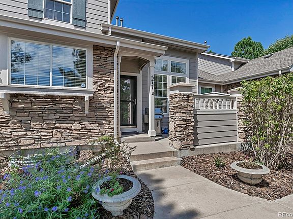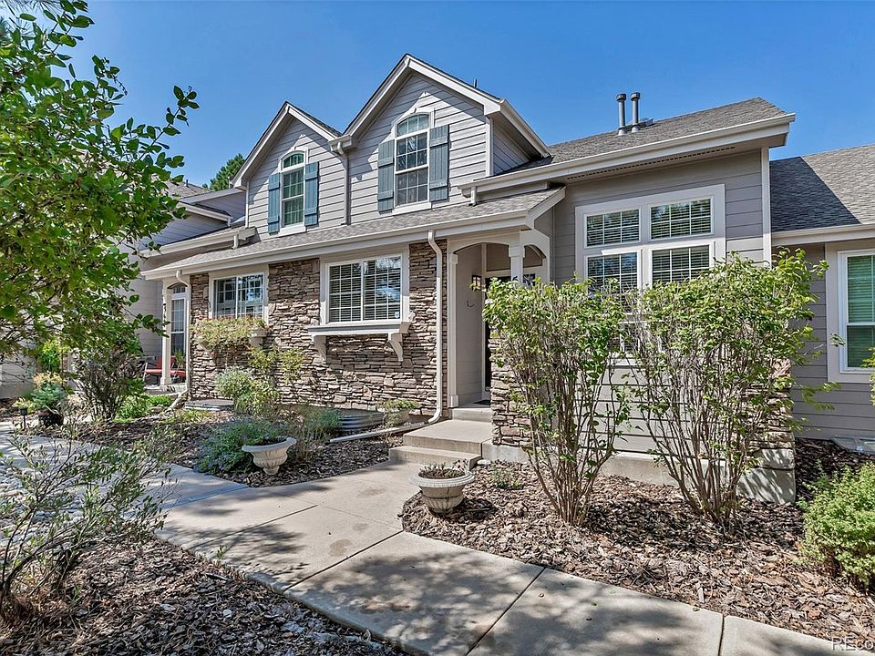 Stunning remodeled 4-bedroom, 4-bath townhouse in the heart of Castle Pines featuring soaring vaulted ceilings, an inviting open floor plan, nestled in picturesque Canterbury Park. Enjoy breathtaking grounds, direct access to scenic walking paths, parks, and expansive open spaces. Situated in a tranquil neighborhood offering the perfect blend of serenity & convenience with easy access to I-25 and a short 10-minute drive to Castle Rock or Park Meadows. Immerse yourself in the area's natural beauty including the iconic Daniel's Park and award-winning Ridge at Castle Pines public golf course. As you step onto the front porch, bask in the morning sun filtering through the trees fronting your new home. Inside, enter a spacious Great Room adorned with high vaulted ceilings, a stunning ledgestone fireplace flowing into a dining area and gourmet kitchen featuring Merillat maple cabinets, granite tile countertops, and stainless steel appliances perfect for entertaining family & friends. Venture upstairs to find a luxurious Master Suite cwith vaulted ceilings, his-and-hers closets, & five-piece bath. The 2nd bedroom also boasts a vaulted ceiling & walk-in closet for ample storage. A versatile 3rd bedroom serves as an ideal home office with built-in cabinets and shelves. The fully finished basement adds valuable living space with a cozy rec room, another bedroom, bonus room, and another full bath. One standout feature is the attached 2½-car garage equipped with built-in storage shelves & overhead storage. For relaxation enjoy the hot tub discreetly located behind screened patio walls—available for negotiation. Experience low-maintenance living at its finest within the HOA covering all exterior maintenance, roof, landscaping, water & sewer, trash & recycling, snow removal, as well as access to amenities including pool, clubhouse, tennis, pickleball, volleyball, playground, parks, and trails.