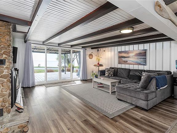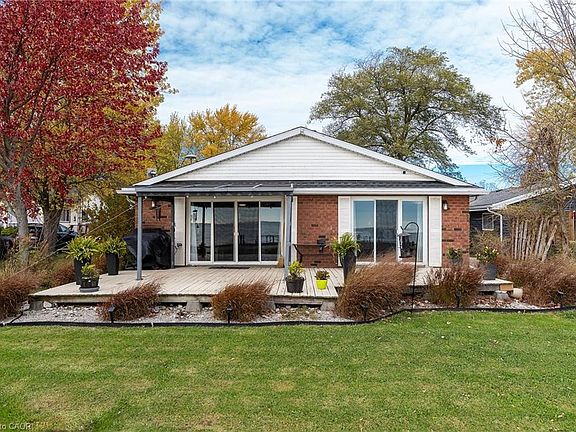 BREATHTAKING Waterfront views at your year round LAKESIDE OASIS. Check out this spacious 4 Bed, 2 Bath Bungalow with Detached Garage! You will be wowed by this one offering privacy, tranquility and peaceful living and inside offers high ceilings, large windows for plenty of natural light and amazing views. The open concept is perfect for entertaining family and friends. The spacious liv rm with FP offers a perfect space for family movie and game nights. The Kitchen is a showstopper with S/S appliances, modern backsplash, stone counters and a lg island w/extra seating and storage. The master bedroom is a real retreat with your own patio door to the large deck with stunning water views. There are also 3 more spacious bedrooms for your family and friends. Saving the best for last is the outside of this spectacular home with the expansive deck-perfect for enjoying your morning coffee or evening wine, family dinners or just watching the waves crash in. The large backyard also offers a spacious fire pit area, horseshoe area and plenty of room for games. The bonus is your own private beach access & deck, perfect for those that love the peace & tranquility of the water all year long. You are also close to trails, golfing and all the conveniences of Dunnville are just moments away. Don't miss this fantastic property that offers EVERYTHING you need, beautifully renovated, spacious floor plan, large yard and lakeside retreat.