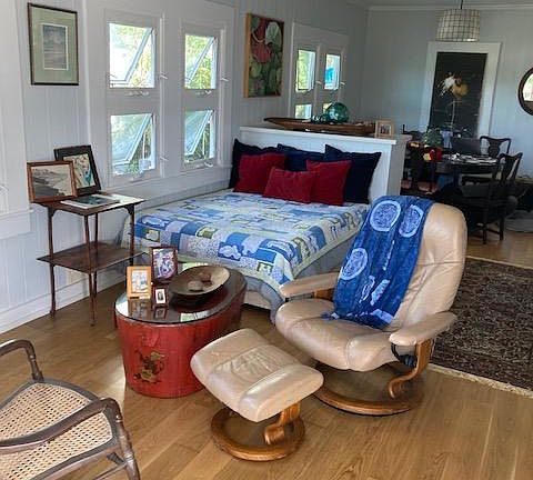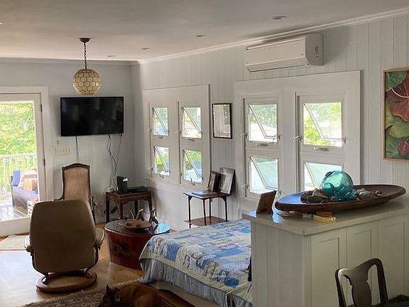 Completely renovated historic Kailua cottage nestled into the hillside above Kailua beach park. The large covered lanai offers a cool breeze while enjoying ocean and sunset views. There are two bedrooms- the master has a king size bed and walk in closet with its own en-suite bathroom. The second bedroom has a queen bed and bathroom across the hall. This bedroom doesn't have a closet, just a dresser. There is also a pune'e or day bed which is in the living room and it is very comfortable. Recent renovations include new hardwood floors, completely redone kitchen, split system AC which quickly cools dow all of the house except the master which has it's own window hung unit. Garage is reserved for the owner but there is parking on site in the driveway. The washer dryer are shared with the studio unit in the back. Seeking 6-12 month lease. Owner pays for water, electric and internet. Parking for 2 cars is provided onsite. House is available starting August or later. Maximum occupants is 4 adults.