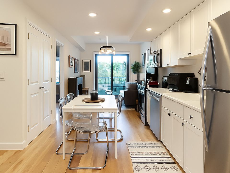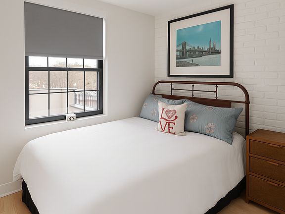 Inside, the thoughtfully designed layout includes two full bathrooms and a flexible second bedroom outfitted with a Murphy bed, ideal for use as a guest room or dedicated home office. Modern finishes, ample natural light, and split-level privacy make this a rare find in one of Brooklyn's most vibrant neighborhoods.