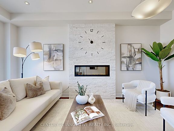 Welcome to this immaculate FREEHOLD townhome in the heart of Patterson, Vaughan! Situated on an oversized 117' deep lot, this bright and modern 2124 sq ft (above grade) residence showcases over $150K in upgrades. Soaring 10-ft ceilings on the main floor and 9-ft ceilings on ground and upper levels. Spa-like primary ensuite features a soaker tub and a glass shower with full-height glass and tiling. Fully upgraded gourmet dream kitchen featuring premium Bosch appliances, a gas cooktop, Fisher & Paykel fridge, granite countertops, and upgraded 9-ft tall cabinetry. Open-concept design flows seamlessly from the kitchen to the living room, highlighted by an electric fireplace set against an upgraded white quartzite stone accent wall. Step outside to a spacious 17x20 ft walk-out terrace perfect for outdoor entertaining with natural gas line hookup for BBQ, plus two additional balconies for enjoying the outdoors. Versatile ground floor offers flexible space ideal for multi-generational living, featuring a room that can serve as a family room, home office, gym, or fourth bedroom, complete with 3-pc bathroom. Fully upgraded dream double-car garage with brand new modern insulated garage door, 240V EV-ready charging outlet, Gladiator panels, and an extended driveway accommodating 4 cars. The thoughtful layout is considered the best floor plan available (Orion B1). Modern security features include a Ring alarm system with smart doorbell, security camera, and door reinforcement locks. Energy-efficient dual zone HVAC system with hydronic forced air heating ensures year-round comfort. Perfectly positioned close to Rutherford Go station, top-ranking schools, shops, and parks. Move-in ready - this stunning home truly has it all!