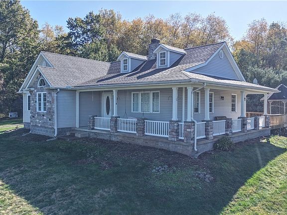 Live Onsite Auction Saturday November 22 at 11:00 AM!! Parcels 1-3. Here’s a great opportunity to own 53 acres in a great area! Tucked away at the end of a long driveway lies this beautiful ranch home which provides 3 bedrooms, 2 full baths, kitchen, dining room, living room, and laundry on the main level along with a finished basement with a kitchenette, family room, bedroom, full bath, and plenty of storage. 2 car attached garage. The wrap around front porch and large rear deck overlook the beautiful land & countryside and make excellent areas for guests. Utilities include private well & septic, solar system with solar panels, electric forced air furnace, central air, and an outdoor wood burner. The land is mostly wooded, offering trails, food plots, great hunting, and building sites. Plan to join us for the open house to see what all this property has to offer.