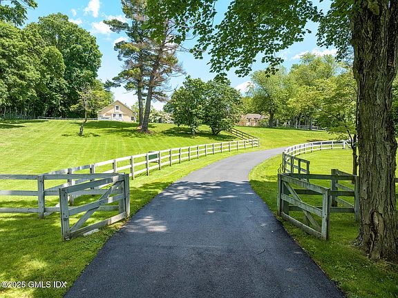 Set on 6.58 elevated acres on prestigious Round Hill Rd, this distinguished property—once part of the 200+ acre Wilshire Farms estate—offers a rare opportunity to own a piece of local history. A dramatic, gated quarter-mile driveway past white split-rail fencing leads to a 1910 carriage house. The property includes a 4-bedroom guest cottage, a detached 3-car garage, 3-stall stables, a pool with cabana, and a tennis court. Unique opportunity to own exceptional country retreat and a part of Greenwich history.