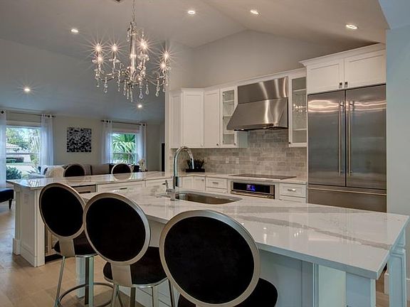 PRICED TO SELL! Entire house FURNISHED and move in ready. Renovated to the highest standards by Mason Martin Builders. This home offers high-end finishes and custom details. This stunning home sits on a beautiful garden corner lot surrounded by lush landscaping on one of the most sought after areas in Bird Key. Meticulous interior and exterior updates will immediately impress you. This three bedroom, three bath pool home is simply waiting for your personal enjoyment. Foyer entry leads to the open living/dining room with cathedral 14' ceilings & solid oak wood flooring. The large gourmet kitchen is installed with Jenn Air Integrated stainless steel appliances, custom soft close cabinetry and polished Quartz counter tops accented with Carrera marble tile. The kitchen offers you a center island with a deep dish sink along with a breakfast bar and wine cooler. This spacious, fresh open floor plan is perfect for entertaining family/friends. The living area windows, which is equipped with the latest storm protection, including impact glass, gives you views of the beautiful one of a kind backyard. Enjoy your fall nights cooking out on the new paved deck and swimming in the resurfaced L-shaped heated SALT WATER pool/spa. The renovation includes all new mechanicals including electrical wiring, all new plumbing, insulation,duct work and a/c, and pool equipment. Dont miss your chance to own this like new hidden gem nestled between Downtown Sarasota, St. Armands Circle and pristine sandy beaches!