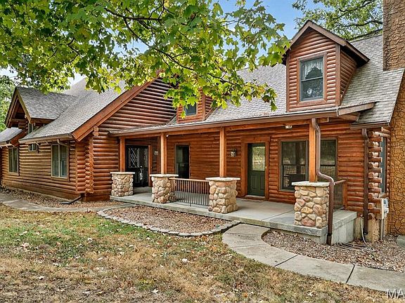 BE HOME FOR THE HOLIDAYS-MOTIVATED SELLER has transitioned to a new phase of life. Lovingly cared for one owner rustic log home is a unique chance to realize a dream for those who cherish solitude, nature, and adventure. Just far enough from the fast-paced way of life to offer tranquility, yet close enough to amenities for convenience. Come live the Augusta Wine Country lifestyle year-round. Paradise on 3.4 +/-acre wooded hilltop perfect for this 4 BR, 3 bath home set against the backdrop of nature's canvas with plenty of natural light & endless views. Soaring vaulted ceilings, expansive great room, large kitchen w/two eat-at bars, dining area w/two skylights, two woodburning fireplaces, hearth room, UL primary BR w/en-suite bath & balcony overlooking GR room below. Large loft area overlooking GR room ideal for exercise room, office, or your own retreat. Additional 3 BRS & 2 full baths on main level. Dining area opens onto two-tier deck w/steps to paver patio below, fire pit & access to LL w/o. Partially finished LL with pool table & overhead light that are included, plus rough-in for fourth bath. 3+ car oversized garage, workshop space, blacktopped driveway, separate parking pad for guests. Room for an outbuilding east of driveway. Nearby, you’ll find quaint shops, wineries, beer gardens, local eateries, County Parks, conservation areas and vibrant community events. Outdoor enthusiasts will appreciate access to hiking & biking trails, fishing & hunting spots. One year HSA home warranty included.
