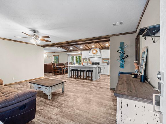 Country living at its best! This like-new 4-bedroom, 2-bath manufactured home sits on 24.265 secluded acres, offering peace, privacy, and room to roam. Tucked away off a private, gated road with no HOA, this property is the perfect retreat for those seeking tranquility and space. Inside, you’ll love the inviting split floor plan, two spacious living areas, charming custom wood accents throughout, and an oversized primary bathroom that provides a true spa-like feel. Step outside to enjoy an expansive covered porch ideal for relaxing or entertaining, plus a 40x50 shop with an additional 40x20 concrete slab—perfect for hobbies, storage, or projects. Experience the best of country living with modern comfort and endless potential!
