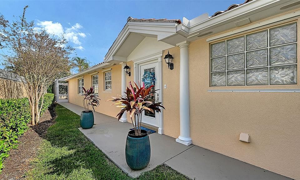 Immaculate Villa, move in ready, just bring your toothbrush. Beautifully decorated with many updates including beautiful stained solid wood cabinets in kitchen, granite counters, stainless appliances, Rheem A/C replaced in 2023, Glass Door Entry, 85" LG TV in den, built in wall unit in living room, EV charging station in garage, epoxy garage floor, tile throughout the living area, newer carpet in bedrooms and so much more. Conveniently located in walking distance to the VW Town Center and all of the amenities. Village Walk is a wonderful unique community, built hurricane safe with poured concrete walls and foundations. Every home in Village Walk is considered to be a Single Family Home, roofs are tied down to the structures, per the Florida Building Codes and considered to be above average. Inspectors, roofers and Insurance agents that are familiar with Village Walk will share this information with you. Village Walk is in Flood Zone X, an area that is determined to be outside the 1% and 0.2% chance of flooding. FEMA updated, 8/2/24. Flood Zone provided by Sarasota County Tax reports. Evacuation zone D, flood insurance is not mandatory, but flood insurance is available. Village Walk power lines are underground with a Sarasota Fire Department just down Honore, rarely losing power. Amenities include 24 hr guarded gate, geo-thermal heated and cooled lap & lagoon pools, six Har-Tru Tennis courts, Pickle ball, Bocce' Ball and Basketball courts, State of the Art fitness Center, Miles of walking and bike paths, over 500 acres of lakes and preserves. There are over 50 activity groups who meet daily, weekly, or monthly. Plus there is a full service Cafe with full service Bar, Tiki Hut with bar service at the pool, Gas Station, Barber shop/Hair Salon, and Gift Shop. A special NOTE is that Village Walk did not lose power during the hurricanes and there was No flooding. What a Great Place to call home!