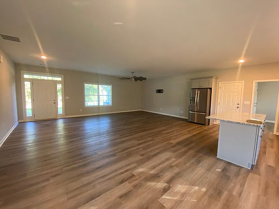 New custom home, move in ready! 3-Bedroom 2 Full Bath home on a private property. Open concept floor plan, large kitchen with stainless appliances, beautiful stained cabinets and granite countertops. Large kitchen island overlooks living room. LVP flooring and tile throughout house, no carpet. Master bedroom suite has its own en-suite bathroom with a vanity sink and a spacious walk-in closet. Separate laundry room.