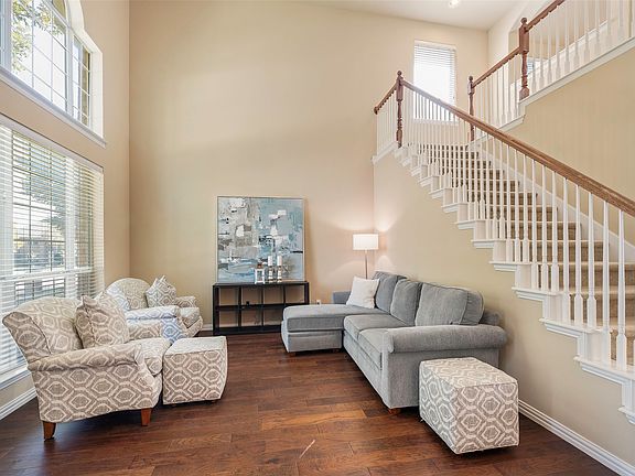 Impressive light and bright home in the sought-after Turnbridge neighborhood of Frisco. The open layout features a formal dining room, family room with stone fireplace, upstairs game room, and dedicated media room. The kitchen offers neutral solid surface counters, gas cooktop, built-in microwave, and ample storage. The primary suite includes dual vanities, a jetted soaking tub, separate shower, and large walk-in closet. Secondary bedrooms are spacious with excellent storage. Hardwood floors, neutral finishes, and abundant natural light enhance the interior. Enjoy an extended patio and grassy backyard. The desirable Turnbridge community offers a neighborhood pool, playgrounds, and trails, all in a prime location close to shopping, dining, and major roadways. Pool table and accessories will remain with the home.