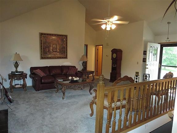 5771 S. Stonegate has high cathedral ceiling in living room. Kitchen-dining area upstairs is open to living space. Step out on the upper deck to view the beautiful park like yard with covered patio. Kitchen upgraded with new counter tops, new sink, new appliances, and new tile floor. Two wood burning fireplaces, one upstairs & one in family room. Basement has bonus room or office. New roof with 25 year warranty. New siding. HVAC & water heater replaced 4 years ago. Day lilies will soon be in full bloom and the bamboo plants can be harvested in November.