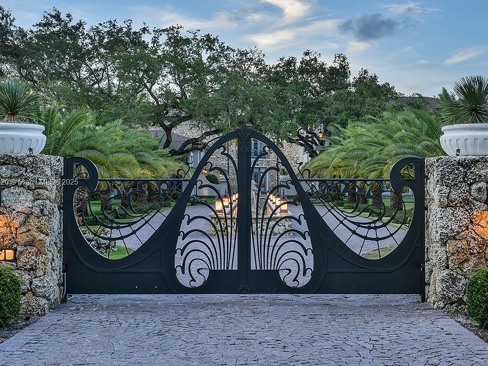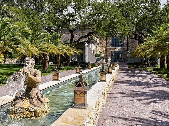 Generational one-of-a-kind estate on almost two acres in North Pinecrest, featuring luxury from both the “old world” and the new, with 8 bedrooms, 7 bathrooms, 2 half-bathrooms and incredible formal spaces for all. Designed by Portuondo Perotti Architects, the interior reflects a classic design with Art Nouveau inspiration, soaring ceilings, custom details, and unique features throughout. The grand entrance is surrounded by a 7-ft high coral stone wall, leading to a 200-ft long driveway and a centerpiece with a 107-ft water feature and Triton sculptures. Outside features include elegant exterior lighting, beautiful landscaping, French garden with English hedges, tennis court, 60-ft long pool, spa, and a variety of outdoor living spaces.