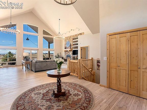 Your Private Colorado Retreat Nestled on over 35 acres with panoramic Pikes Peak views from nearly every room, this elegant home offers the perfect balance of privacy and proximity—just minutes from town. The light-filled great room features a cozy fireplace and mountain vistas. The kitchen includes a 5-burner gas island cooktop, built-in grill, warming drawer, custom cabinetry, and an eat-in nook with unobstructed views. A formal dining room with high ceilings and a view of the front pasture adds an elegant touch. The Owner’s Suite offers a private fireplace and spa-style en-suite. A second main-level bedroom, spacious laundry room, and thoughtful layout complete the main floor. The finished walk-out basement is ideal for entertaining or multi-generational living, with three en-suite bedrooms, a second full kitchen, dining space, and a third fireplace—all with continued mountain views. Equestrian features include fenced and cross-fenced pastures, loafing shed, 2-stall barn with tack room (room to expand), oversized RV garage door, 4+ vehicle parking, and plumbed water and electric throughout. Recent upgrades: new wood flooring and carpet, roof, deck railing, interior/exterior paint, remodeled Owner’s bath, new sprinkler system, new road base, and more. A rare opportunity to own space, luxury, and Colorado beauty in one remarkable property.
