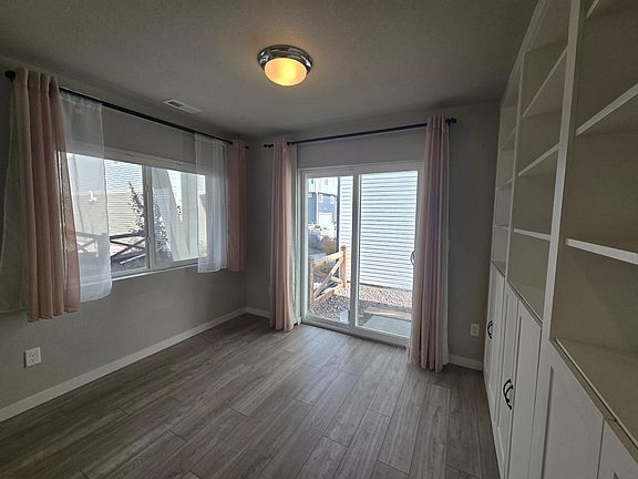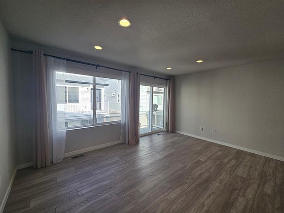 Step inside this stunning three-story home in the highly sought-after Banning Lewis Ranch community. Built in 2022, this home combines modern style with comfortable living. Gorgeous luxury vinyl plank flooring and plush carpet flow throughout the home, adding warmth and sophistication to every level.On the entry level, youll find a versatile family room or office space with a walk-out to the side yard perfect for relaxing or entertaining as well as access to the spacious two-car garage.Head upstairs to the main level, where natural light pours through large windows into the open concept living area. The inviting living room offers access to the front balcony, while the stylish kitchen features granite countertops, a generous island, and sleek stainless-steel appliances. A convenient laundry area with a large stackable washer and dryer is also located on this floor.Two bright bedrooms and a beautifully finished full bathroom complete the main level.The top floor is dedicated to the luxurious primary suite, featuring a spacious layout, an elegant en-suite bathroom, and an impressive walk-in closet.Enjoy all that Banning Lewis Ranch has to offer: parks, playgrounds, pools, sports courts, dog parks, and so much more, all just moments from your doorstep.