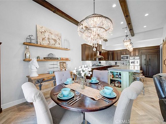 Welcome to Casa Sierra Azul, a luxury 4-bedroom, 4.5-bathroom desert retreat in the gated Santa Rosa Trail community of La Quinta. This single-level 3,201 sq ft home blends modern elegance with resort-style comfort, featuring a bright open-concept design, wood-look tile flooring, and soaring beamed ceilings. The spacious great room with a gas fireplace flows seamlessly into the dining area and gourmet kitchen complete with granite counters, a large island, and premium appliances.