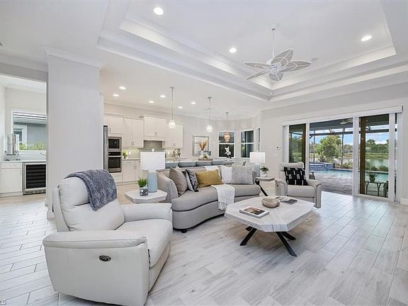 Welcome to your private coastal retreat at 5773 Anegada Drive! This meticulous ‘Gardenia’ home blends coastal charm, comfort, and style with peaceful lake views as its backdrop. Den is in the process of being converted to a 3rd Bedroom within this pristine, light-filled residence designed for effortless living. The open-concept floor plan seamlessly connects the family room, kitchen, and dining areas—perfect for both relaxing and entertaining. The chef’s kitchen boasts white soft-close cabinetry, quartz countertops, stainless steel appliances, a spacious island, and a dry bar with wine refrigerator. Sophisticated finishes include tray ceilings, crown molding, custom lighting and fans, and motorized privacy shades throughout. Outdoors, enjoy ideal northern exposure and tranquil lake views from your private retreat featuring a sparkling saltwater pool and spa with sun shelf and bubblers. A picture-frame screen enclosure covered living and dining areas, and lush custom landscaping create a serene oasis, while motorized Storm Smart protection ensures convenience and security. Every detail has been thoughtfully designed to combine elegance, comfort, and livability—making this move-in ready home the perfect place to begin your Naples lifestyle. The Isles of Collier Preserve is a private, gated community less than 5 miles from Old Naples’ world-class dining, boutique shopping, and pristine beaches. Surrounded by natural beauty and just minutes from the Naples Botanical Gardens, Hamilton Harbor Yacht Club, East Naples Park, and the Bayshore Arts District, The Isles offers an unmatched lifestyle. Residents enjoy a state-of-the-art fitness center, resort-style and lap pools, 14 pickleball courts, 6 tennis courts, bocce, a dog park, and the waterfront Overlook Bar & Grill. Over 8 miles of scenic trails and winding waterways invite kayaking, paddleboarding, biking, and bird watching. With low HOA fees and Naples ranked the #1 place to live in America, The Isles blends luxury, nature, and convenience.