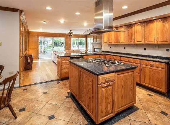 Imagine living in own resort; where a hobby store owner once designed a play land for his kidswhere the extra deep pool features a grotto cave spa; where a rope bannister leads you up stone steps to a pool slide and multiple cascading waterfalls. Stunning are the towering palms that make you feel like you're in Miami Beach not Agoura Hills. Welcome to 5773 Stonecrest Dr. in perfect Morrison Ranch. A single story, this home has 4 bedrooms, 3.5 baths and an office in over 3,000 SF on almost half acre. Amenities include hardwood floors, new interior paint, built ins, a granite kitchen and stainless steel appliances. There are 3 fireplaces and the paneled family room that even has a drop down projector screen! The patio has a fully covered roof and the step down cabana-covered BBQ has built in benches, tables and from the pool side, a swim up bar. There's a fire pit and owned solar. It does want for some updates but what a property! You can even walk to Las Virgenes schools too. Repair Cosmetic