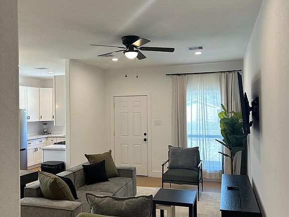 Leasing starts 9/1/25. The unit is FULLY FURNISHED AND INCLUDES ALL APPLIANCES. ASK ABOUT THE OPTION FOR ALL BILLS PAID! 3-bedroom, 2-bathroom home featuring an open-concept layout connecting the living area, kitchen, and dining space. Washer and dryer are conveniently located near the dining area. The primary bedroom includes a private bathroom with a covered shower and a walk-in closet. Schedule your showing today!