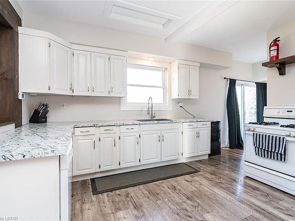 Welcome to the charming rural getaway at 5774 Parkhouse Drive. This beautifully renovated 2 bedroom is cute and cozy and sits on a 1.19 acre piece of land. With a fresh coat of paint, laminate throughout, solid pine doors and wooden accent beams all the work has been done for you. The open concept main living area is great for entertaining and is complete with large windows to view your great outdoor oasis. Both bedrooms and bathroom have great storage space, and the home also features a full unfinished basement with a woodstove and tons of space. Outdoors you will love the mature trees and country views, as well as the shed for additional storage. Great commuting distance from Glencoe, Strathroy or London, come check out this property!
