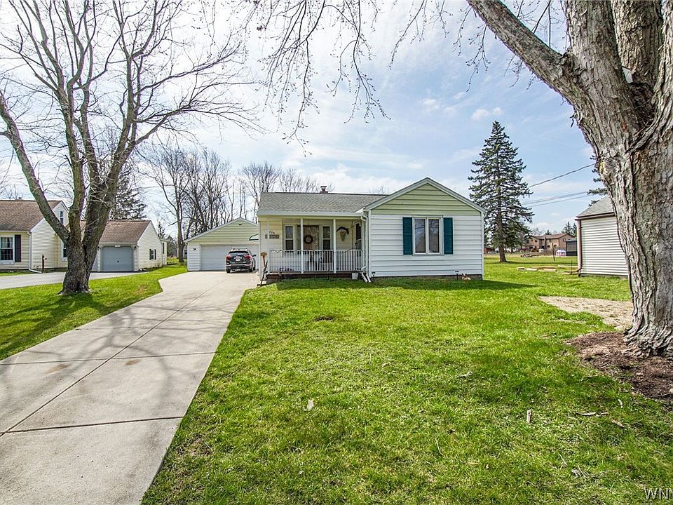 Welcome Home! Look no further, this quaint, well-maintained three bedroom ranch located on a partially wooded 2 acre lot has everything you need & more! Large eat-in kitchen equipped with pantry & new oven/range & refrigerator (2022). Home offers living room as well as family room that can be used as home office, play room, & fitness area among other things. Bathroom has been updated (2023). Privacy is offered as home is set back with a large shade tree so you can relax on your covered porch with new awning & railing (2023). Yard has plenty of room for your furry friends to roam. Enjoy summer bbq's entertaining family & friends on the back deck. Extra land in back for exploring, hiking or adding additional buildings to your property. Spacious garage includes a rear workshop with electrical service. Full basement for laundry & storage. Some other great features include new sewer line to street, back door, & fresh paint throughout (2023). Roof (2008), hot water tank (2018), furnace & a/c (2014). Property available for viewing at open houses only. Open houses are scheduled on Thurs, 4/18, 5-7 pm, Sat, 4/20, 11am-1pm, Sun 4/21, 11 am- 1 pm. All offers are due Mon, 4/22 by 12:00 pm.