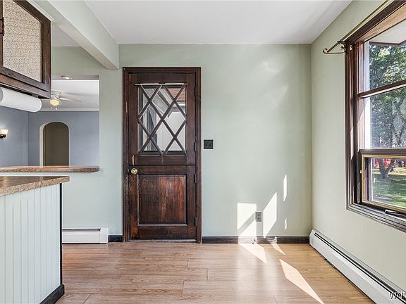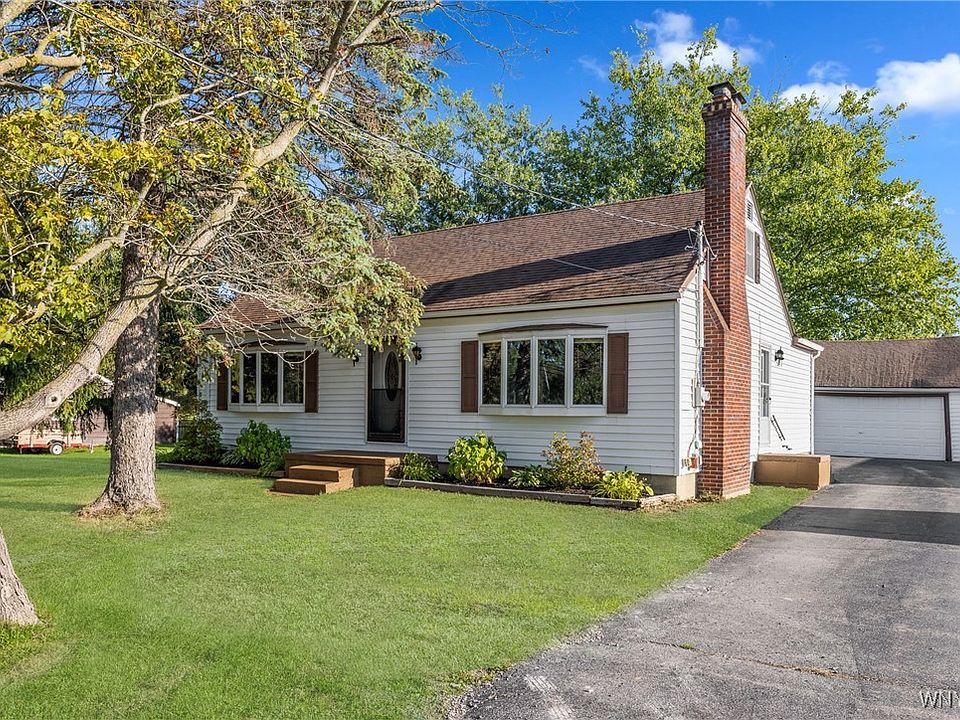 BACK ON MARKET! Well maintained 3 bedroom/1 bath Cape with inviting open front porch, professionally landscaped, & detached 1.5 car garage with extra storage! Featuring partially fenced yard with mature trees and rear privacy. Step inside and find a spacious living room with a large Bay window and cozy, wood-burning fireplace (NRTC) perfect for relaxing evenings. This Home offers two generous bedrooms on the first floor and expansive second floor primary suite with a sitting area, ideal for a private retreat! Kitchen/Dining Combo flow to the rear deck and private rear yard highlighting 1/2 acre lot to create your private oasis! Featuring: hardwood floors throughout, fresh carpet (including basement)in 2025 and ceramic tiled bath. Partially finished basement, fully waterproofed in 2010, w/ drain tile and secondary sump pump for piece of mind. Roof 2010, updated electric, well maintained boiler & HWTank, Centrally located for accessibility to airport, restaurants, shopping & entertainment! Seller will review offers as they are received.