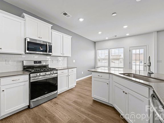 Exceptional Opportunity in the Highly Desirable Resort-Style Walnut Creek community. This Beautiful Like-New Home offers 4 bedrooms plus Loft/family flex space, 2.5 baths, and a large 2-car garage, featuring a thoughtfully designed open-concept floor plan ideal for modern living and entertaining. A welcoming 2-story entrance creates an impressive first impression, highlighted by wooden stair steps with sleek iron rod railings positioned to the side, adding a modern architectural touch and an open, airy feel. The main level showcases durable LVP flooring and a gourmet-style kitchen with stainless steel appliances, gas range, tile backsplash, and seamless flow into the family room. A convenient drop zone by the garage entry provides the perfect space for everyday organization. The second floor features a spacious owner’s suite with a generous walk-in closet, dual vanities, and a walk-in shower, creating a comfortable private retreat. Tile flooring in all bathrooms and the laundry room adds durability and style. Step outside to an oversized patio with private fencing, perfect for outdoor relaxation or gatherings. Located in sought-after Walnut Creek, residents enjoy resort-like amenities unmatched in the area, including two swimming pools with splash area, an expansive clubhouse, fully equipped fitness center, tennis courts, playgrounds, scenic community ponds, and miles of walking trails. The community offers direct access to 60 acres of Walnut Creek Park, featuring soccer and baseball fields, picnic shelters, and nature trails—all within walking distance. Additional features include Wi-Fi and Energy Star certification, an extended driveway, and side walkways. Conveniently located near shopping and dining along 521, with easy access to Ballantyne, Waxhaw, and Lancaster.