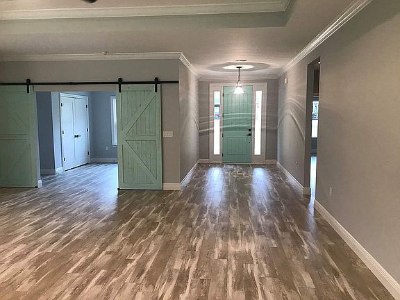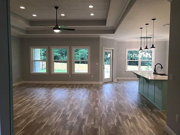 5 bedroom and 3 bath custom built home in July 2020. Laminate flooring throughout (other than tiled bathrooms). Granite kitchen and bathroom counters. Master bath consists of large walk in closet with glass enclosed shower, and free standing tub. Custom built floor-to-ceiling kitchen cabinets and pantry, as well as tiled backsplash. Crown modeling throughout living room and master bedroom. Floor-to-ceiling tiled guest bathroom with glass door. Wood planked ceilings in living room and master bedroom. Large covered front and back porch. 1/2 acre lot with privacy fence. Neighborhood community pool.