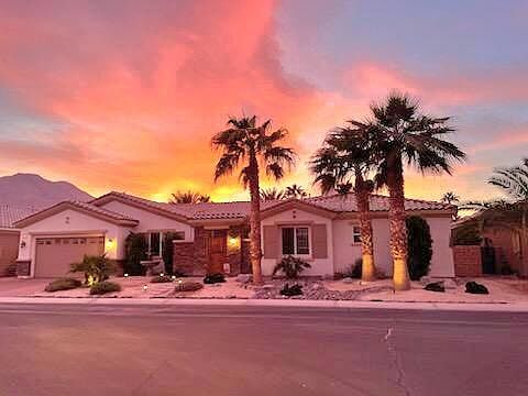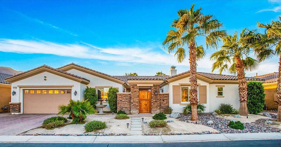 Welcome to Santerra, a cozy community of 28 homes. This 3-bedroom (potentially 4), 3.5-bathroom 'Desert Retreat' is nestled amidst majestic mountains and world-renowned golf courses in the beautiful city of La Quinta.Step inside and be captivated by the bright and open Great Room floor plan, complete with a cozy fireplace and a retractable glass wall that seamlessly connects to an impressive backyard. Here, you'll find a Pebble Tech Salt Water pool and spa, a built-in BBQ with seating, and an outdoor living space that truly embodies the essence of desert living.The gourmet kitchen has been thoughtfully updated, featuring an oversized island, gorgeous quartz countertops, and newer appliances. It's the perfect place for family gatherings and entertaining guests. In addition to the three bedrooms, this home offers two bonus rooms, currently used as an office and a sitting room. The primary suite is spacious, with French doors leading to the pool/spa and BBQ area, an oversized walk-in closet, and a luxurious shower designed for two. Other notable upgrades include professional landscaping, exterior lighting and irrigation, water softener hookups, interior and exterior painting, shutters throughout the house, a newer hot water heater, a new courtyard door and concrete patio, a newer A/C unit, commercial misters, and more. This exceptional home is a must-see and the perfect desert escape.