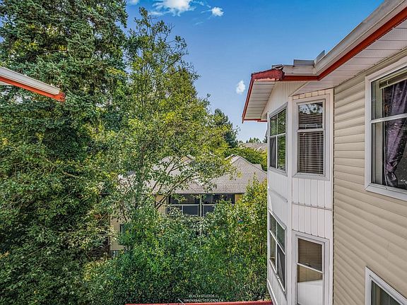 TOP FLOOR - PENTHOUSE LIVING - LARGEST UNIT IN THE BUILDING. Located on the quiet side of the building facing the Greenbelt and Creek, This home boasts OVER 1400 sqft and features Vaulted ceilings and a grand open-concept living space flooded with natural light, large covered balcony facing the Greenbelt, Updated kitchen, Gas Fireplace, Crown mouldings, 2 Large Bedrooms, Primary with 4 piece ensuite and 2nd bedroom is equipped with a built in murphy bed. 1 parking 1 Storage locker, minutes to Shopping, Restaurants and Transit / Future SkyTrain station.
