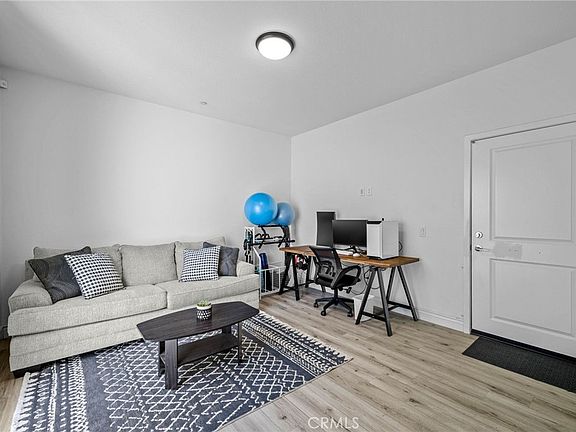 TURNKEY 3 bedroom/4 bathroom condominium is within the Canvas Community built by William Lyon Homes in 2015/2016. This GORGEOUS, TURNKEY CONDO has multi-grey toned GORGEOUS LAMINATE FLOORING throughout the first and second stories, as well as the staircases. As you enter on the first floor, there is a MULTI-PURPOSE ROOM, perfect for a guest room, game room, office, toy room, or gym, and 1/2 bath. This room also has a sliding glass door that leads out to your cozy front patio. Heading up the staircase to the second floor where you find your kitchen that features beautiful black GRANITE COUNTERTOPS, massive amount of storage in the WHITE SHAKER CABINETS, STAINLESS STEEL APPLIANCES, under cabinet lighting, and a bar for additional seating. Your OPEN CONCEPT LIVING AND DINING AREA is adjacent to the kitchen which allows easy visiting with guests while food prepping. Up the staircase to the third floor where new, neutral colored carpet was recently installed. This floor features your NICE SIZE PRIMARY BEDROOM, with large walk-in closet, en-suite bathroom with his & hers vanity, and ceiling fan. Additionally, there are two other bedrooms, a guest bathroom, and CONVENIENT UPSTAIRS LAUNDRY ROOM. Other features include recessed lighting throughout, central AC/Heating, and a tankless water heater. This home also has a LARGE TWO-CAR "DIRECT ACCESS" GARAGE with an epoxy floor. PRICE INCLUDES: Washer, Dryer, Refrigerator, and Nest Thermostat. **Close to multiple freeways and a great surrounding community. Welcome home!
