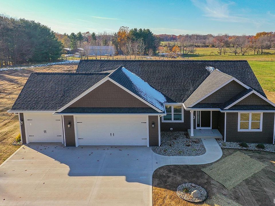 Brand New 4 bed 3 Bath 3 car garage home in the country on 0.75 acres in Middlebury Schools. Definitely worth a look. The kitchen features a quartz counters, 4'x8' island with bar seating and undermount sink, corner pantry, stainless appliances, range hood, tile backsplash, soft close doors and drawers. The main floor master bedroom features a large walk-in closet, on suite bathroom with dual sinks, custom tile shower with glass doors. Additional features include mudroom with bench seat, main floor laundry, large main floor living room 20' x 21' with LVP and trey ceiling, finished basement with living room bathroom and 2 bedrooms, landscaping, irrigation system, large concrete driveway with fiberglass bar with 20' x 20' turn around, American Standard high efficient furnace and A/C with humidifier, tankless water heater, interior and exterior perimeter tile with 10 year waterproofing membrane. Lastly it features new home warranty from MB Construction, LLC, and property is Broker owned.