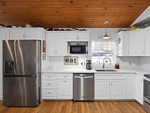 This beautifully updated, year-round retreat offers 50 feet of level lake frontage, effortless access to the water, and sweeping views. Bright, welcoming living spaces feature new flooring, a heated 4-season sunroom, and a wall of windows that bring the lake right into the home. The open layout flows to a Trex lakeside deck (2022), creating the perfect indoor–outdoor setting for gathering and relaxing.