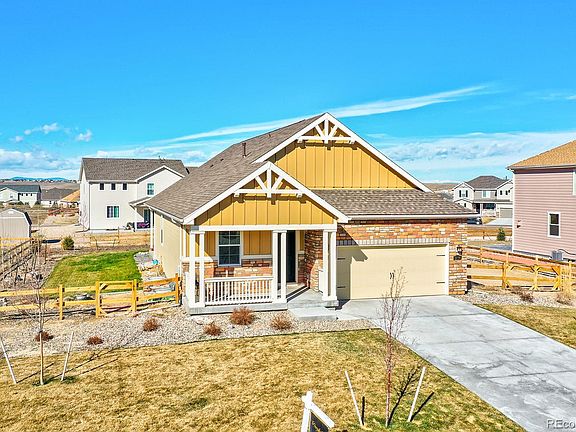 SUCH AN AMAZING VALUE FOR NEW CONSTRUCTION WITH FENCING, LANDSCAPING, & IRRIGATION! All the perks of new construction, with none of the hassles! Welcome home to single-level living at it's finest in Spring Valley Ranch! The spacious, open floor plan boasts a beautiful dining room, kitchen and family room with tons of natural light throughout. The well-appointed kitchen provides tons of cabinet space, a large pantry, granite countertops, and stainless appliances. All bedrooms are located on the main level and just a few steps from the laundry room and main living area. Spacious master suite offers an abundance of natural light, an ensuite with granite countertops, a separate garden tub and shower, and a generous sized walk-in closet! The basement is HUGE, with high ceilings and rough-in plumbing; just waiting for your finishing touches! Home sits on approximately 1/3rd of an acre and is fully fenced with split rail and dog fence. New owners have the option to add an outbuilding or garage on this spacious lot (Design would require HOA approval and permit pulled through Elbert county building department). Substantial completion of the landscaping includes irrigation, sod, edging, fruit trees, and mulch. Living so close to an 18-hole public course with a full-service bar & grill is every golfer's dream! There is so much to love about this beautiful home and community, come see it today!